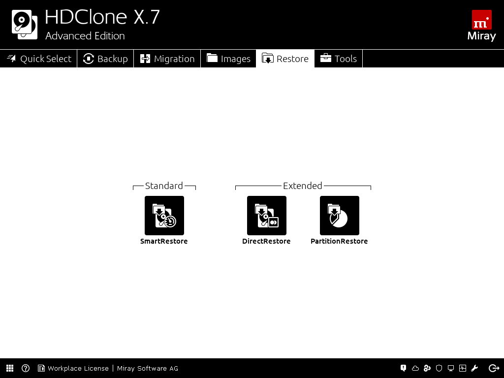 HDClone can be booted from CD/DVD and USB stick, even on SecureBoot systems, so you even can recover an image without a working operating system. With identical interfaces on both programs there is complete ease in switching between the self-booting version and the Windows program and supports USB and Bluetooth mice and keyboards.